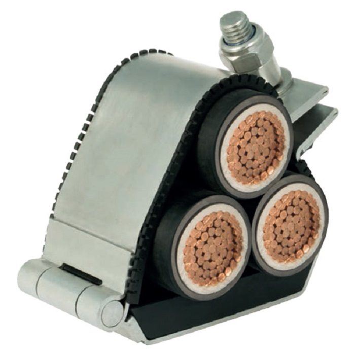 Premium range of stainless steel cable cleats suitable for single core cables in commercial and heavy industrial applications on cables systems with medium to high short circuit forces installed in trefoil formation.