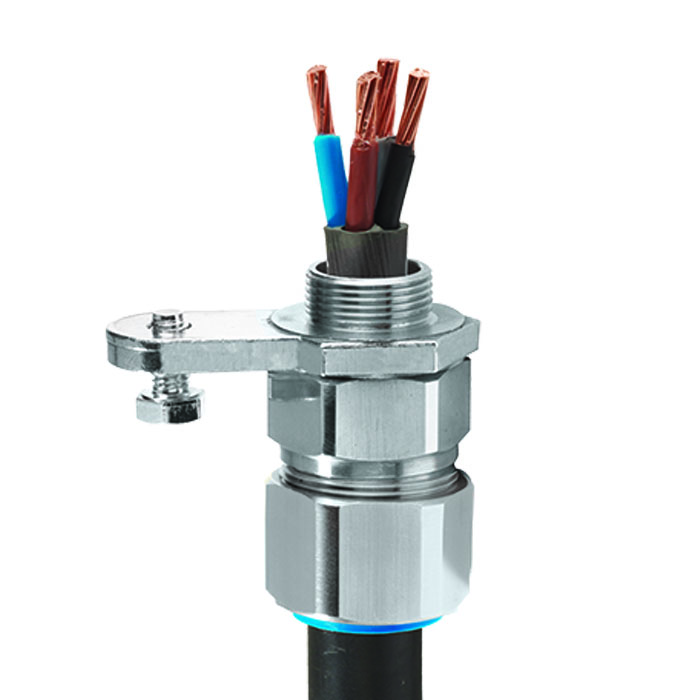 A premium metric range of outdoor brass industrial cable glands designed for use with steel wire armoured cables to with an integral earth lug for a low impedance connection to the armours of the cable.