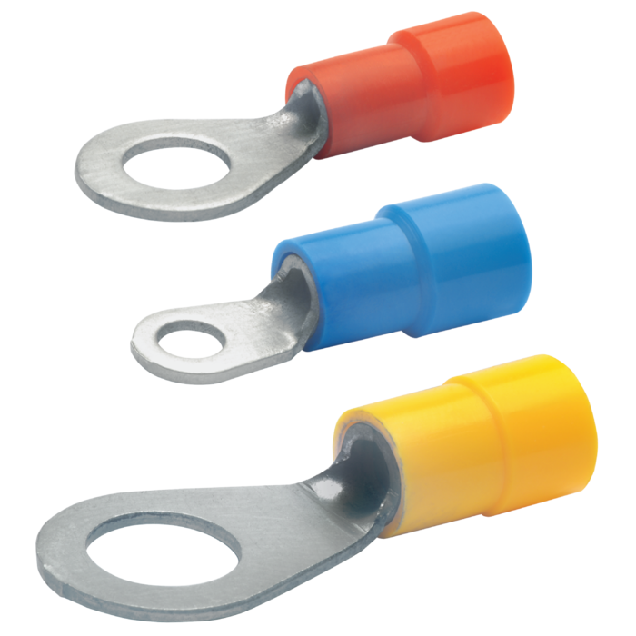 Pre-Insulated ring terminals range that is designed to connect small LV cables via the ring and funnel entry.