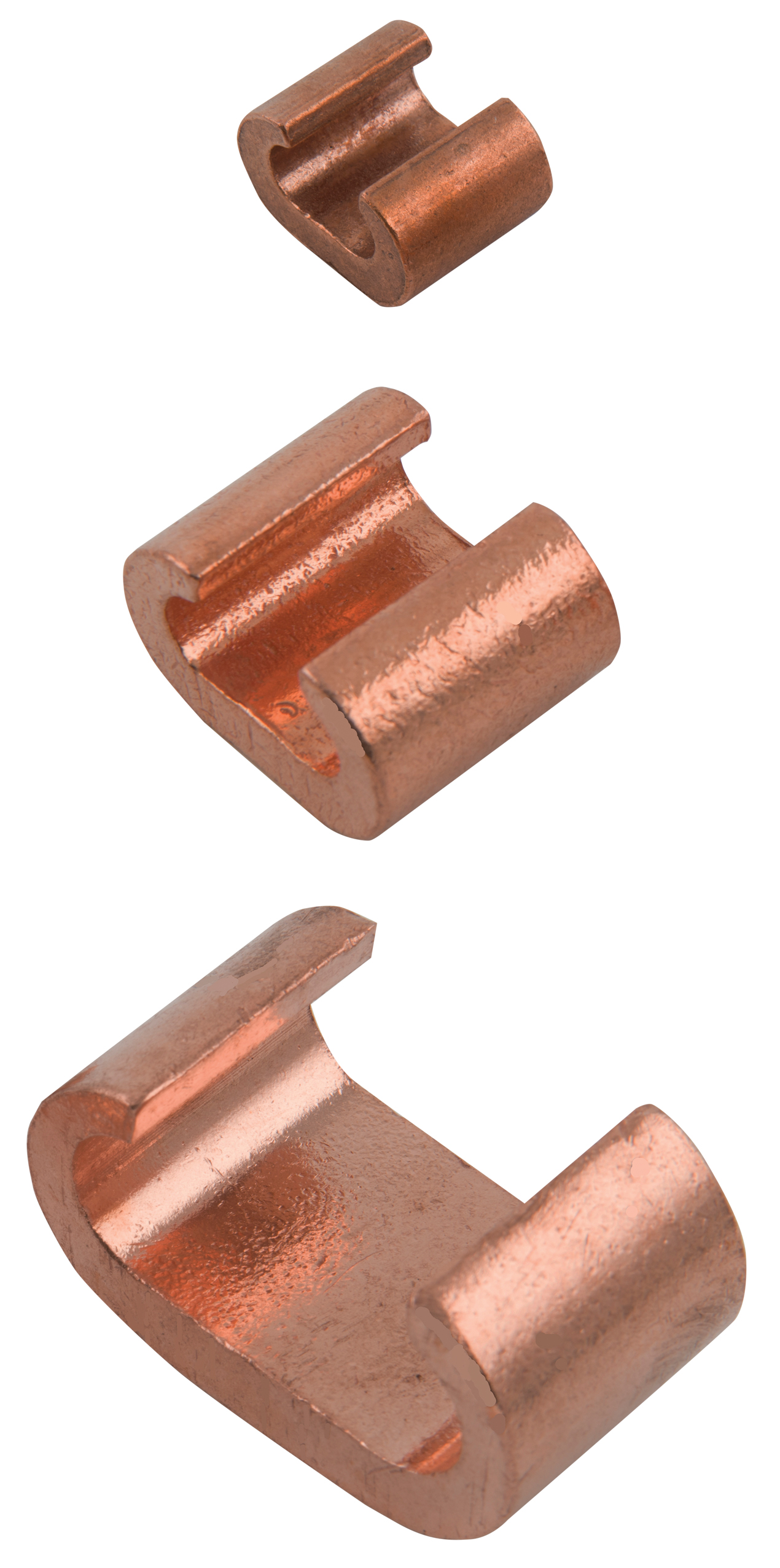 A range of C crimp cable connector clamps designed for tap and parallel connections with stranded copper cables in below ground earthing systems.