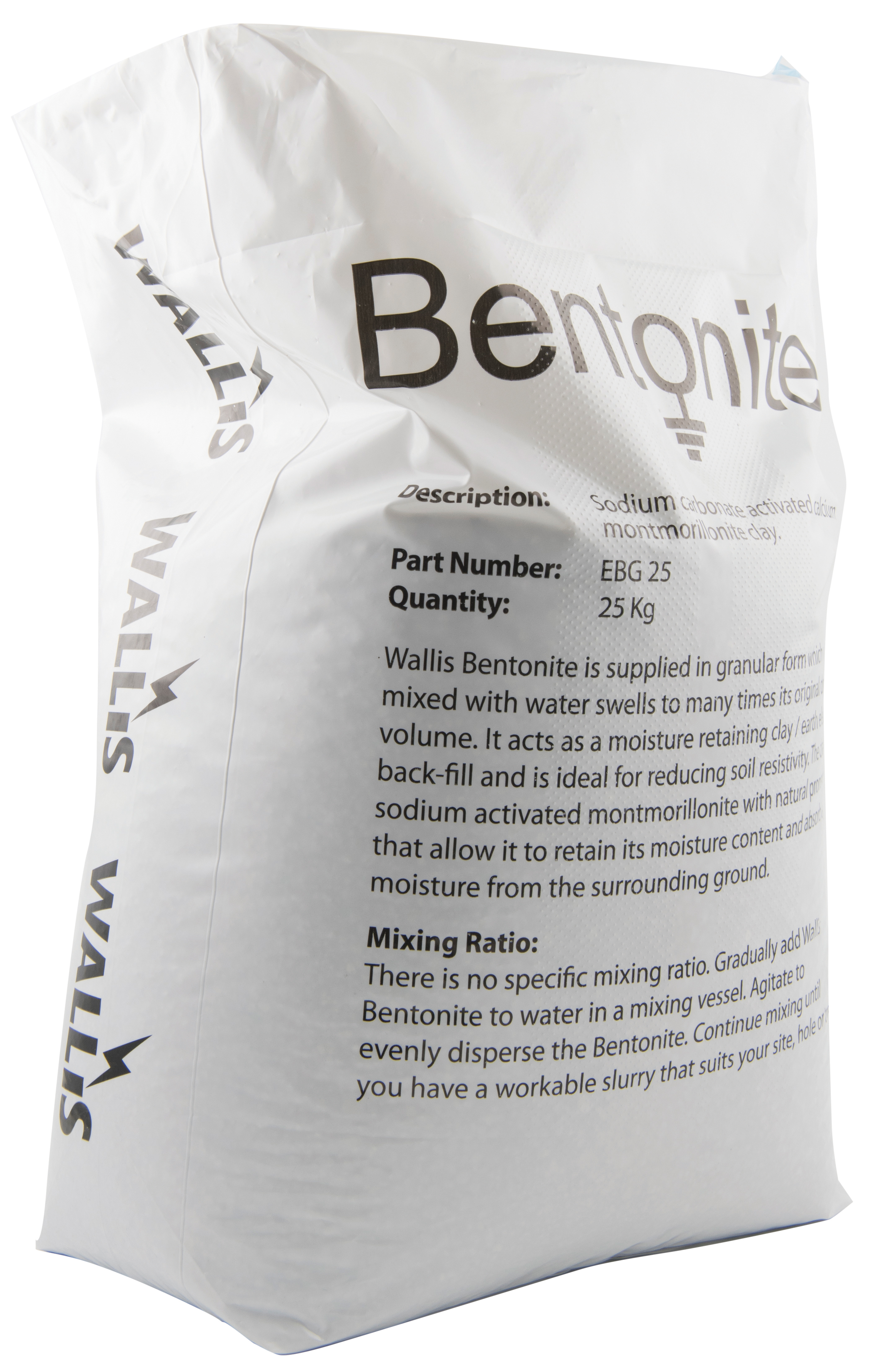 Bentonite is a moisture retaining clay which is used as an earth electrode backfill material to help lower soil resistivity when ground conditions are prohibitive.