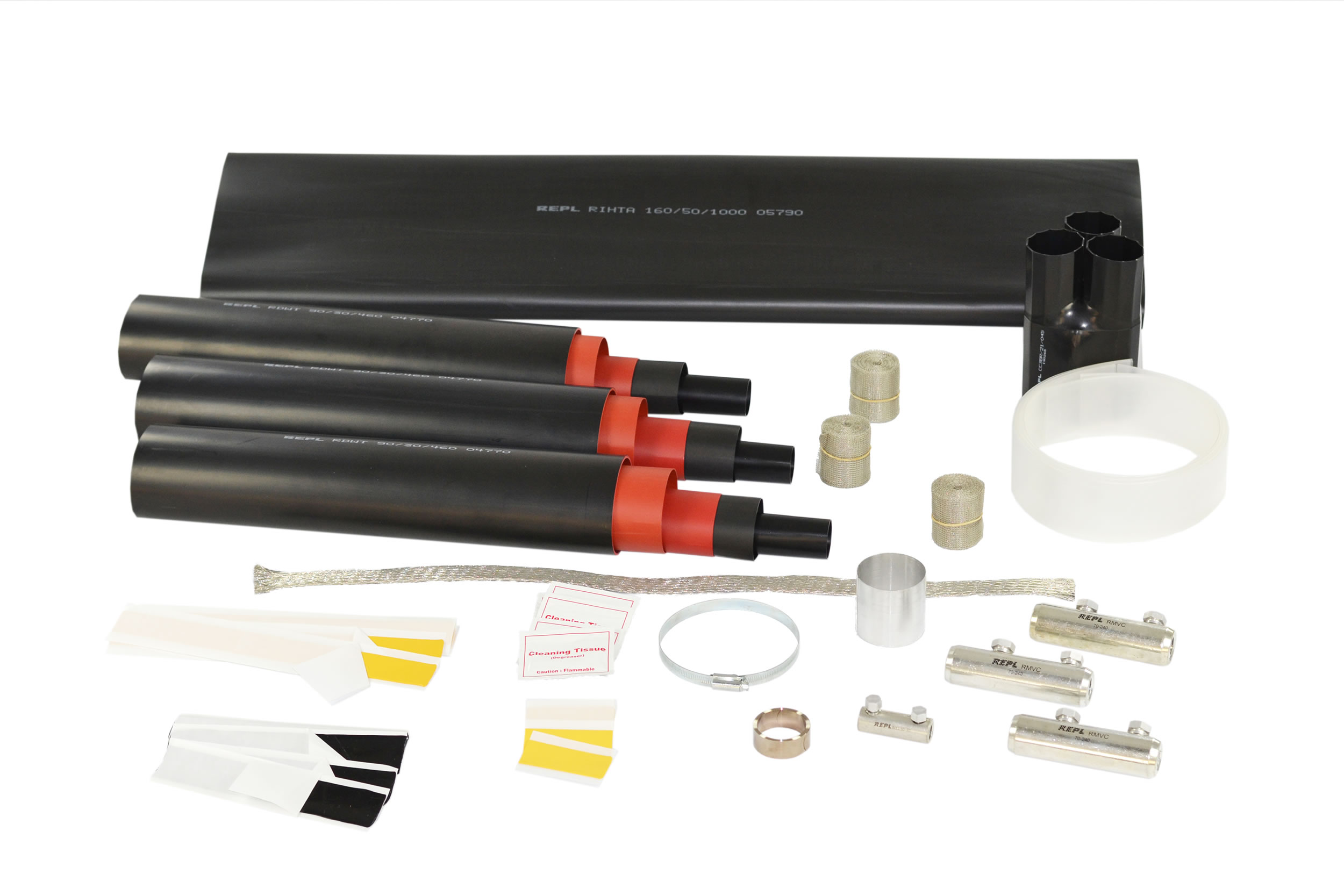 A range of three core heat shrink straight joints designed to connect 33kv PILC insulated cables compatible with both compression and mechanical connector types.