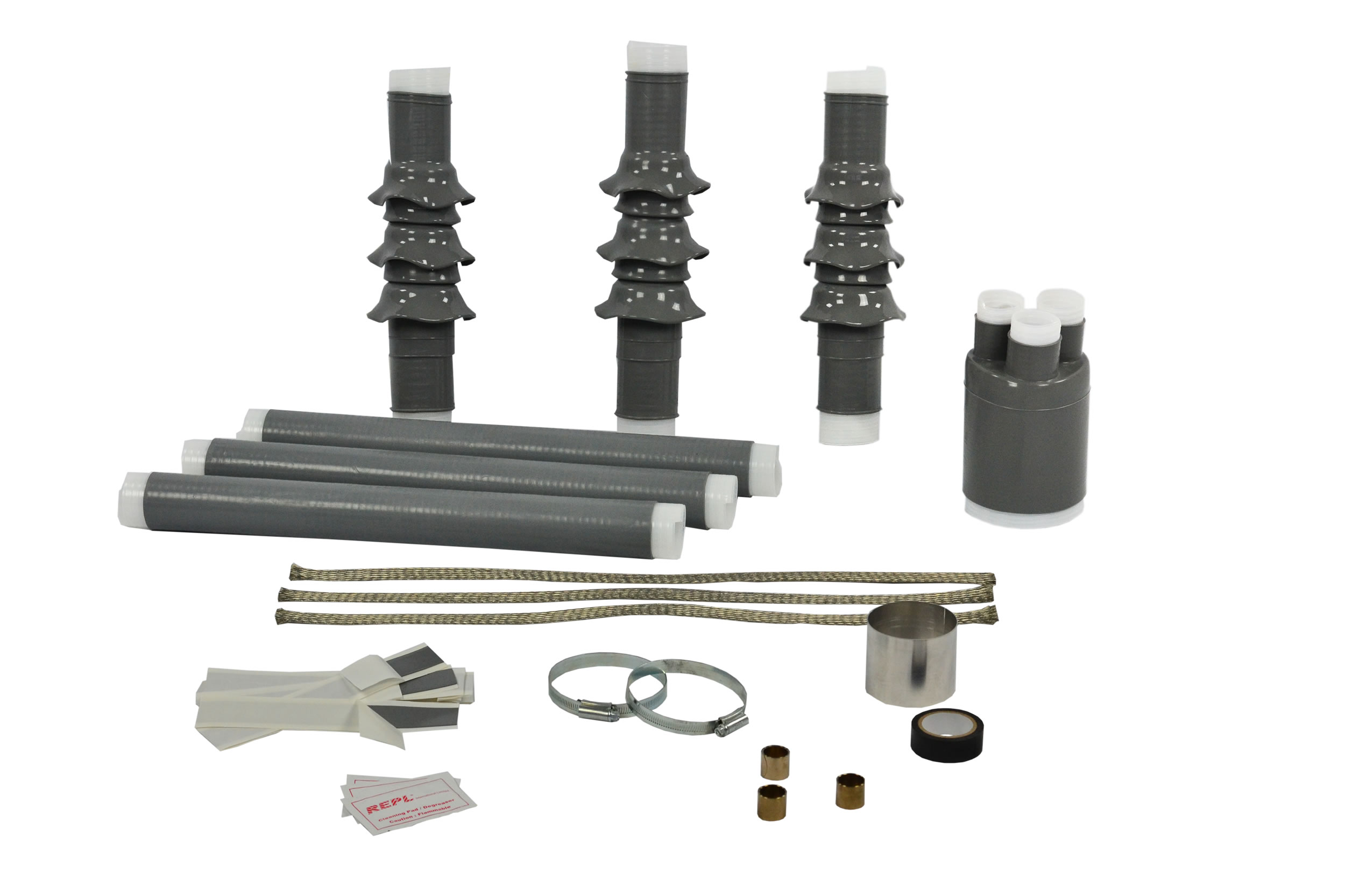 A range of three core coldshrink indoor terminations designed to terminate 33kV polymeric cables onto switchgear and cable end boxes in substations.