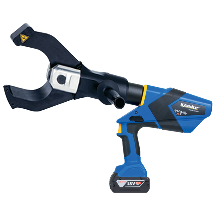 Klauke battery operated hand-held pistol style open jaws cutting tool suitable for cutting copper and aluminium armoured cables. Tool complete with battery, a selection between Bosch or Makita is available. Tool comes complete with LED light for illumination of work area and can download cutting information via Bluetooth.