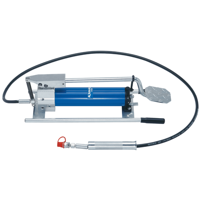 Klauke hydraulic foot pump complete with quick release coupler suitable for connection to crimping or cutting heads.